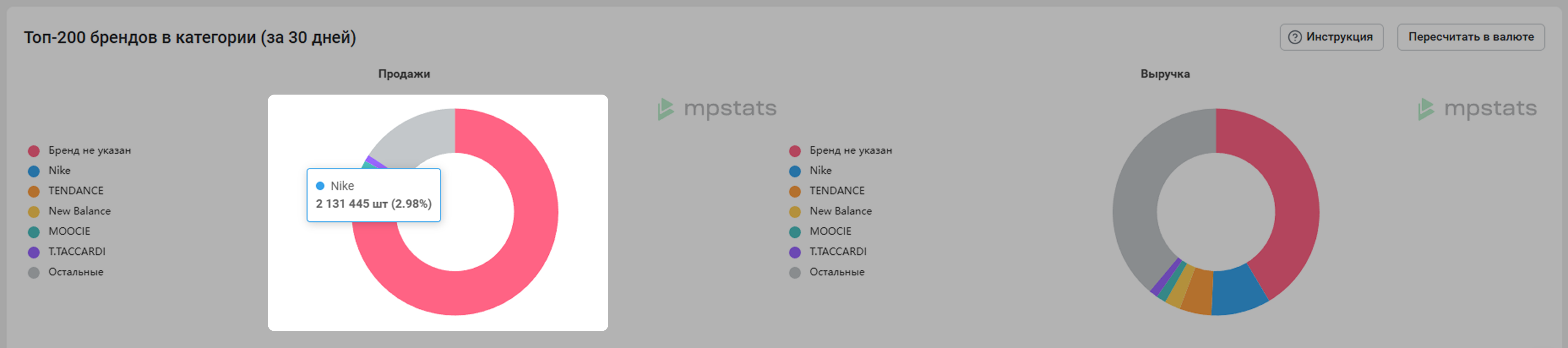 Диаграмма показывает доли первых шести брендов в выбранной категории.