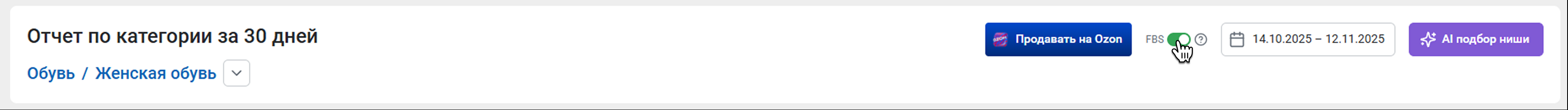 По умолчанию показываем данные только по товарам со складов маркетплейса. Если вы активируете переключатель FBS, статистика по товарам будет отображаться полностью (и по FBO, и по FBS).