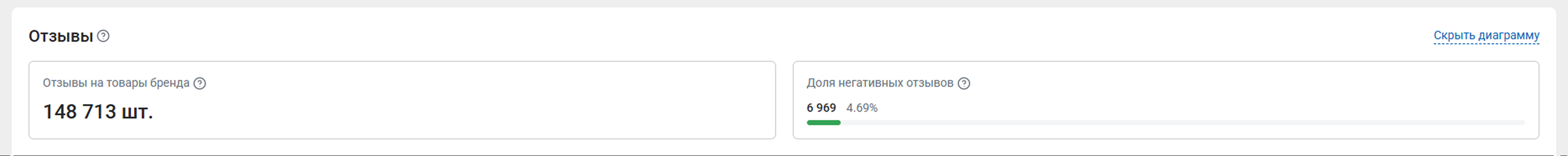 В отчете вы найдете сводную информацию по отзывам. Разберем на примере отчета по бренду.