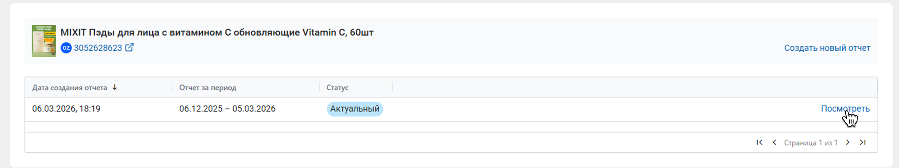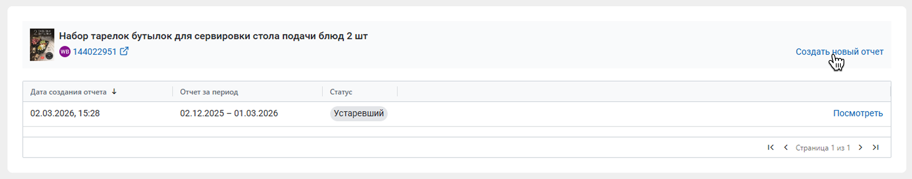 Если отчет создан больше 30 дней назад, у него будет статус Устаревший. Чтобы обновить данные о товаре, нажмите Создать новый отчет. Создание и обновление отчета расходует 1 лимит.