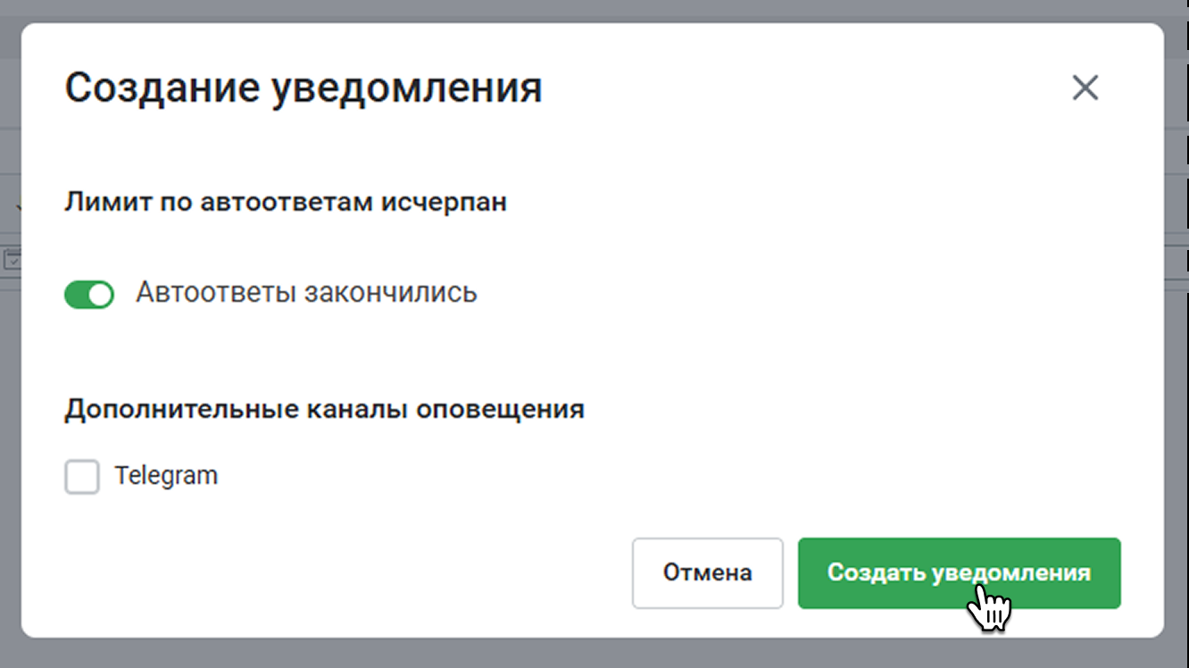 Оповестим вас, если закончатся лимиты Автоответов. Для этого нажмите на колокольчик на странице Отзывов.