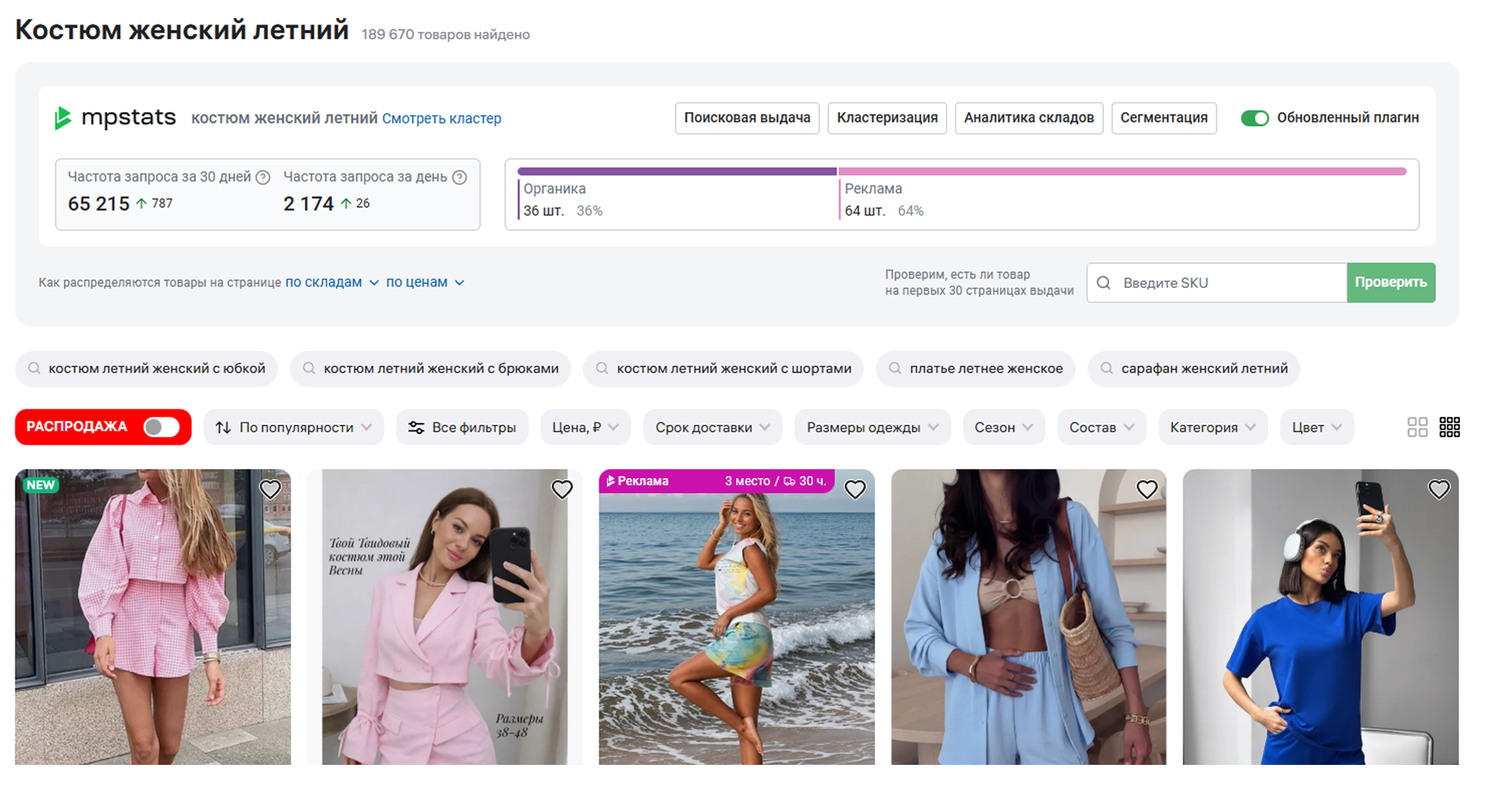 Зайдите на страницу Wildberries или OZON и введите любой запрос. Плагин покажет данные по товарам.