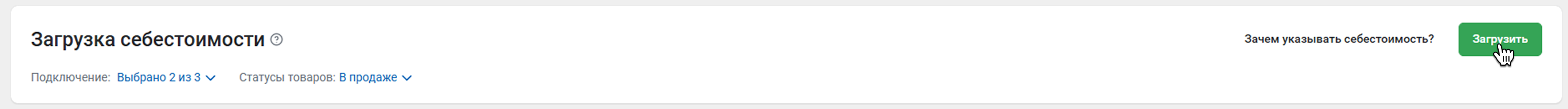 Инструмент Загрузка себестоимости поможет добавить в Кабинет Ozon себестоимость ваших товаров – массово или по отдельности.