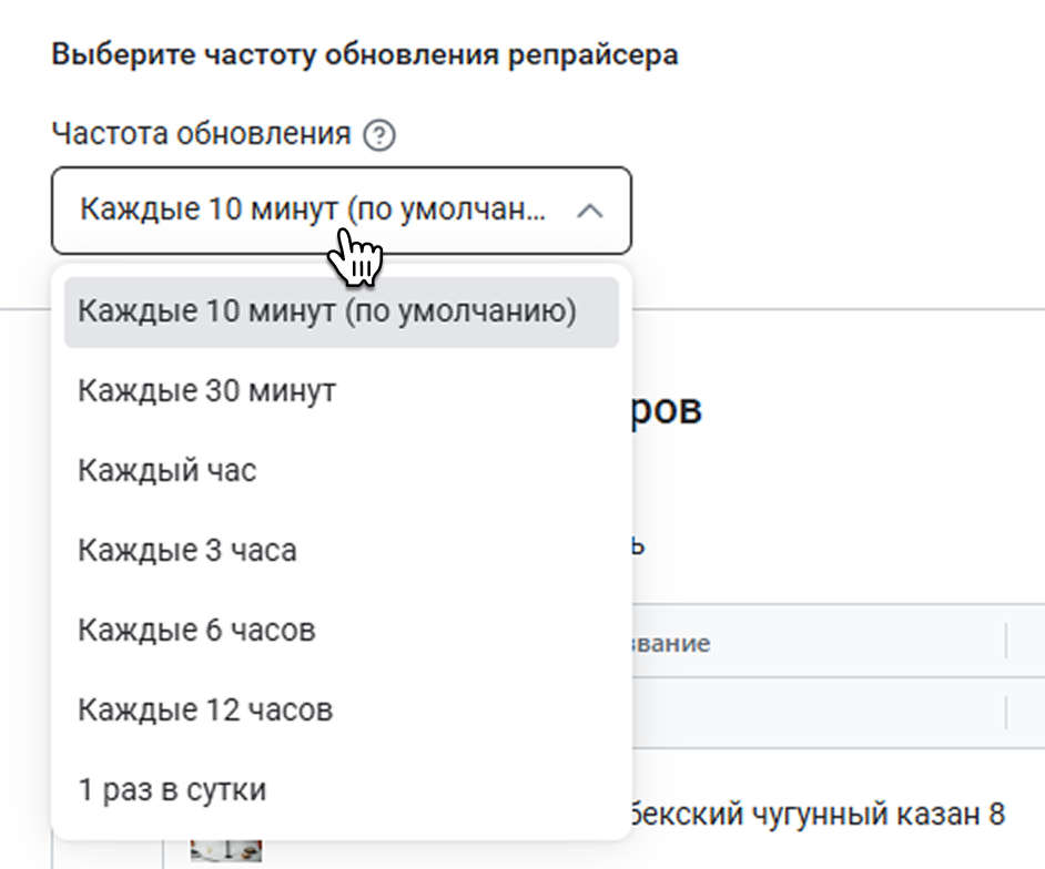В репрайсере можно установить Частоту обновления цен. Доступны такие интервалы: