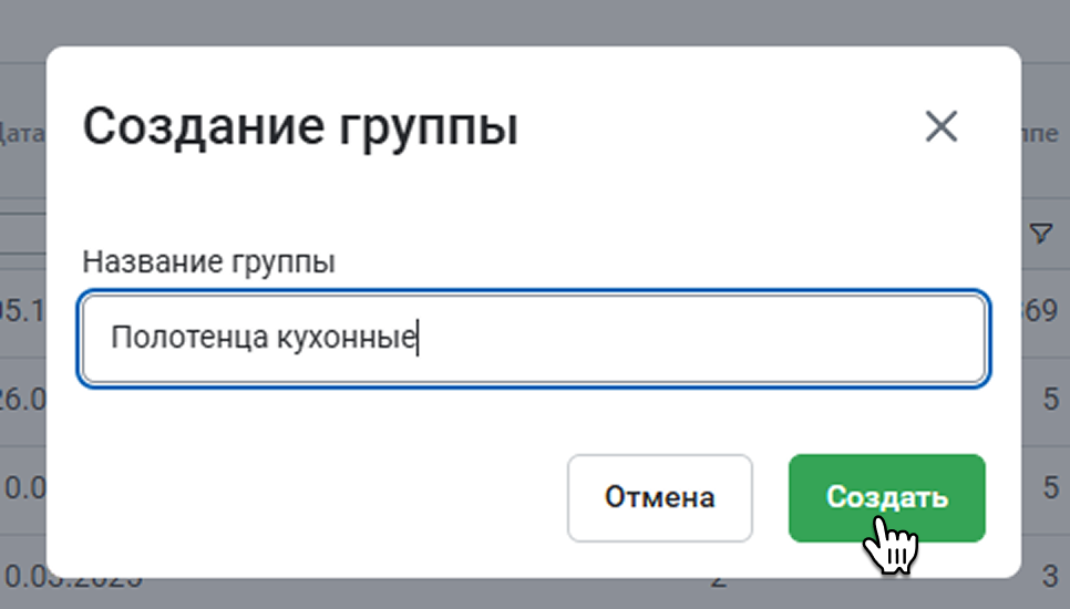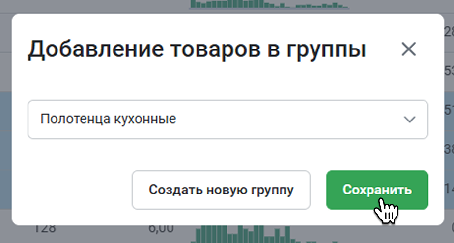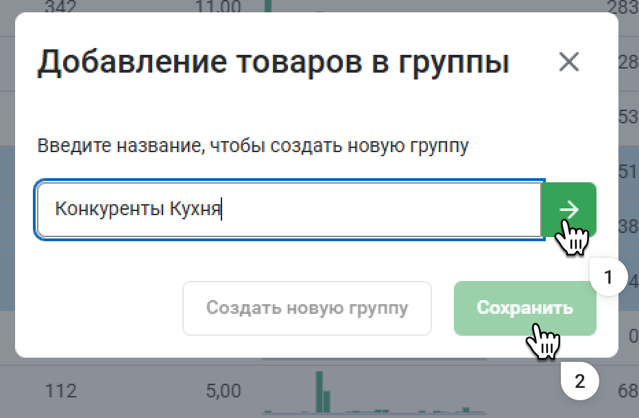 Если нужной группы пока нет, нажмите Создать новую группу. Введите название и нажмите на зеленую стрелочку. А потом нажмите Сохранить. Товары появятся в новой группе.