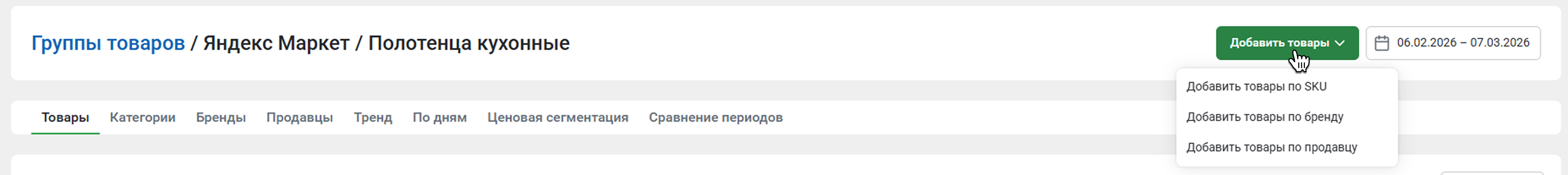 Важно! Учитывайте, что на Яндекс Маркете нет уникальных SKU. Один и тот же SKU может встречаться у разных продавцов. Поэтому, когда вы добавляете артикул в группу, в нее попадут все товары под этим SKU