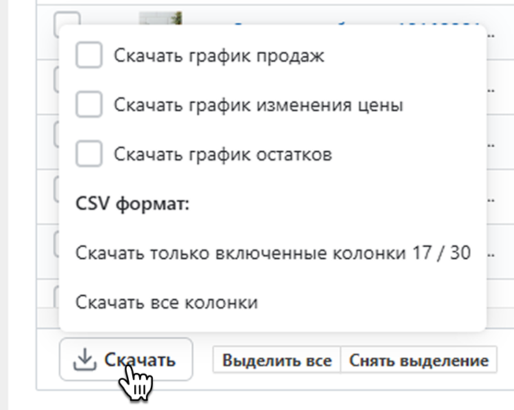 Отчет по товарам – это сводная таблица по ваше выборке за выбранный период. Здесь вы найдете основные финансовые показатели товаров (процент выкупа, цену, продажи и многое другое). Более подробно от отчете можно прочитать в статье Товары.