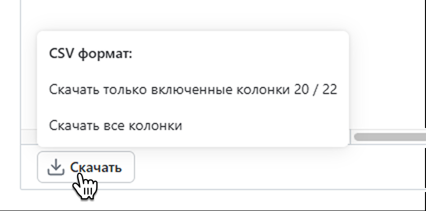 Данные отчета можно экспортировать как файл в формате .csv. Для этого нажмите Скачать внизу таблицы.