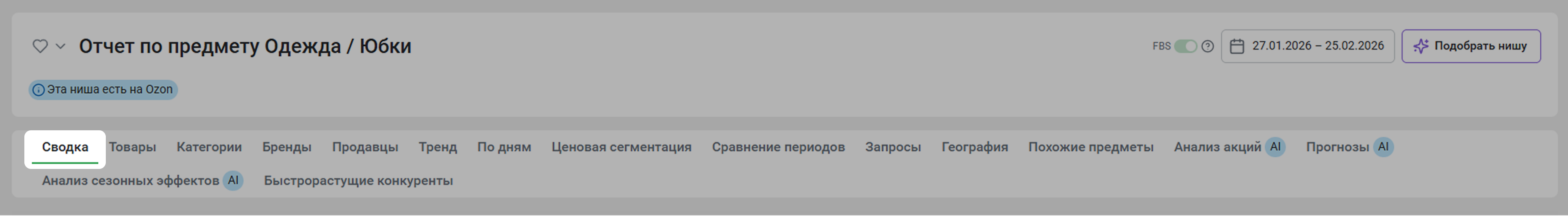 По умолчанию показываем данные только по товарам со складов маркетплейса. Если вы активируете переключатель FBS, статистика по товарам будет отображаться полностью (и по FBO, и по FBS).