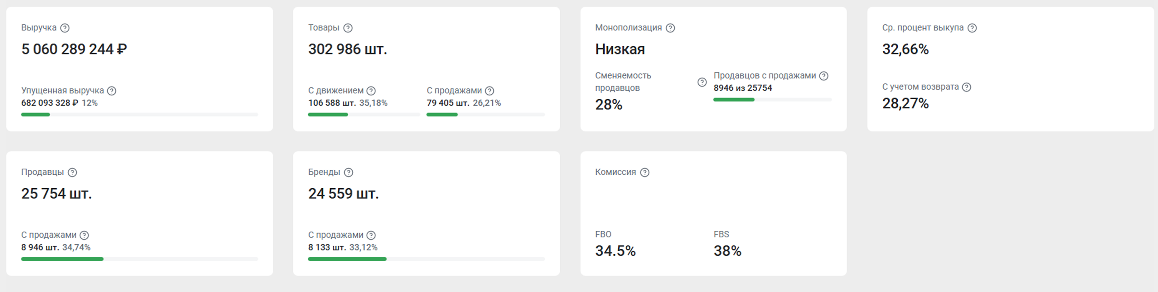 Для оценки уровня монополизации используется индекс Херфиндаля–Хиршмана. Он рассчитывается так: доля каждого продавца в категории в процентах возводится во 2 степень, а потом эти значения суммируются. Значение индекса от 0 до 1499 говорит о низком уровне монополизации, от 1500 до 2499 – об умеренном, от 2500 до 10000 – о высоком
