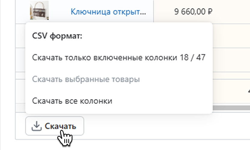 Чтобы скачать отчет по сравнению, нажмите Скачать в левом нижнем углу таблицы.